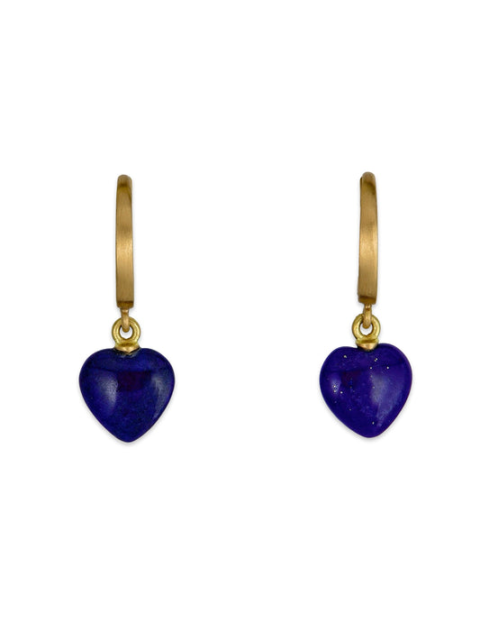 Mini Heart Leverback Earrings with Lapis Lazuli