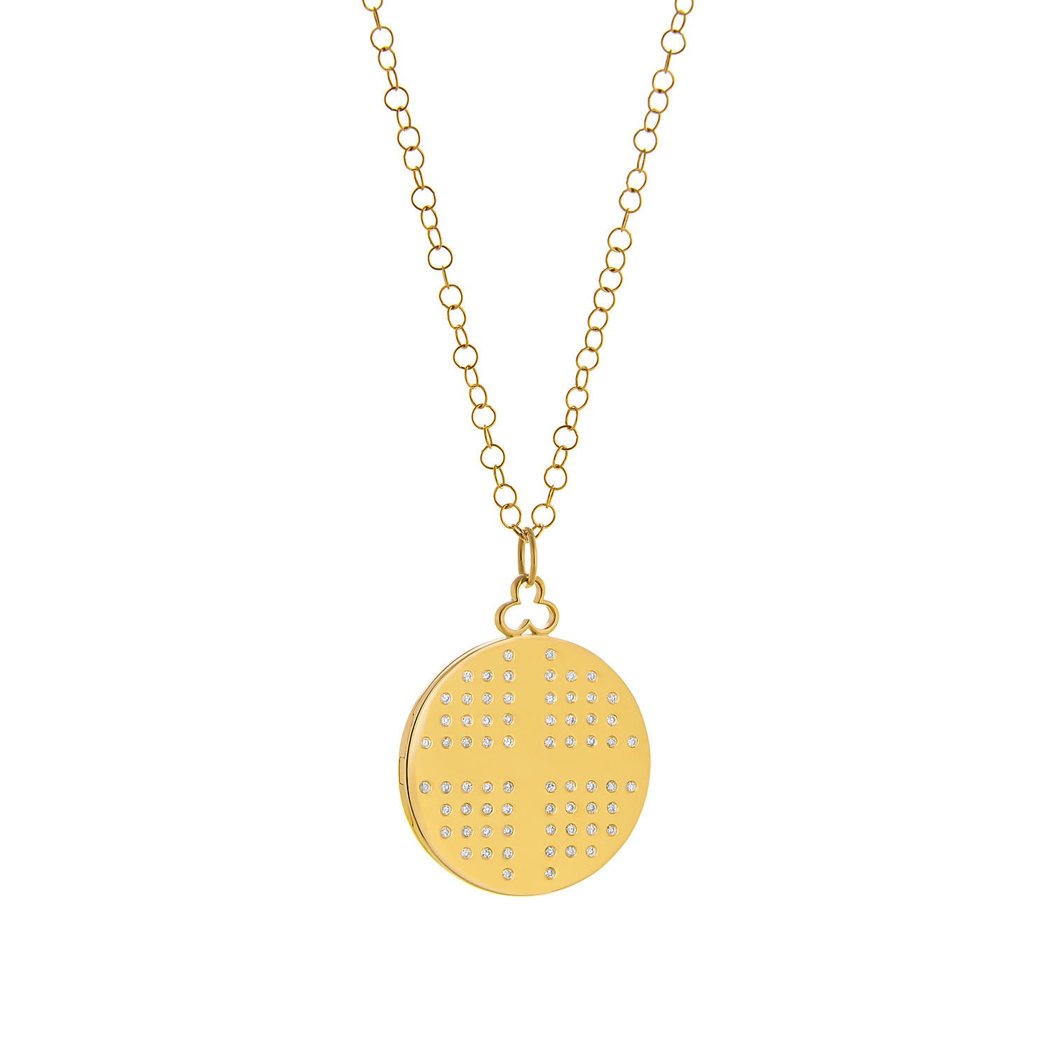 A study in quiet luxury, this 18k yellow gold locket is an ode to both sentiment and style. Its hand finished surface is accented with a constellation of hand-set white diamonds, creating a refined shimmer that catches the light with every movement. Designed to hold a treasured photograph or keepsake, the locket opens to reveal a discreet interior, making it as personal as it is beautiful. Modern in silhouette yet timeless in spirit, this piece is destined to become part of your everyday ritual - or a cherished gift for someone you love.
