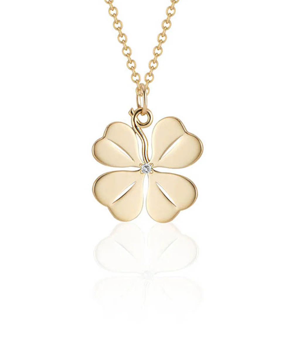 Aurelia Demark's signature large Four Leaf Clover pendant will bring you luck and style. This pendant is handcrafted from 18KT yellow gold and embellished with a diamond. Like our other large pendants, this Four Leaf Clover looks great worn on a short or long necklace.