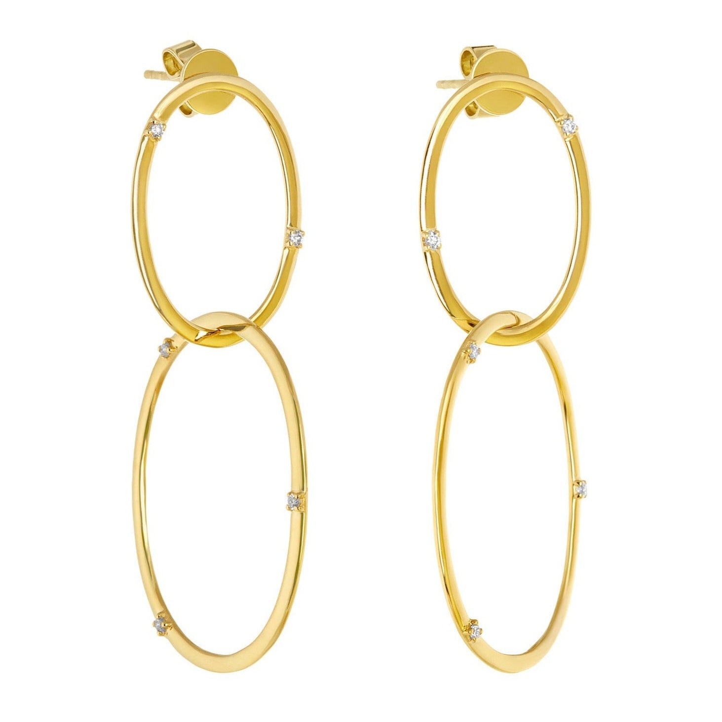 Experience the power of double the impact with Devon Woodhill's stunning interlocking diamond-studded eternity earrings. These earrings are like hoops, but twice as nice, making them the perfect accessory for absolutely everyone!