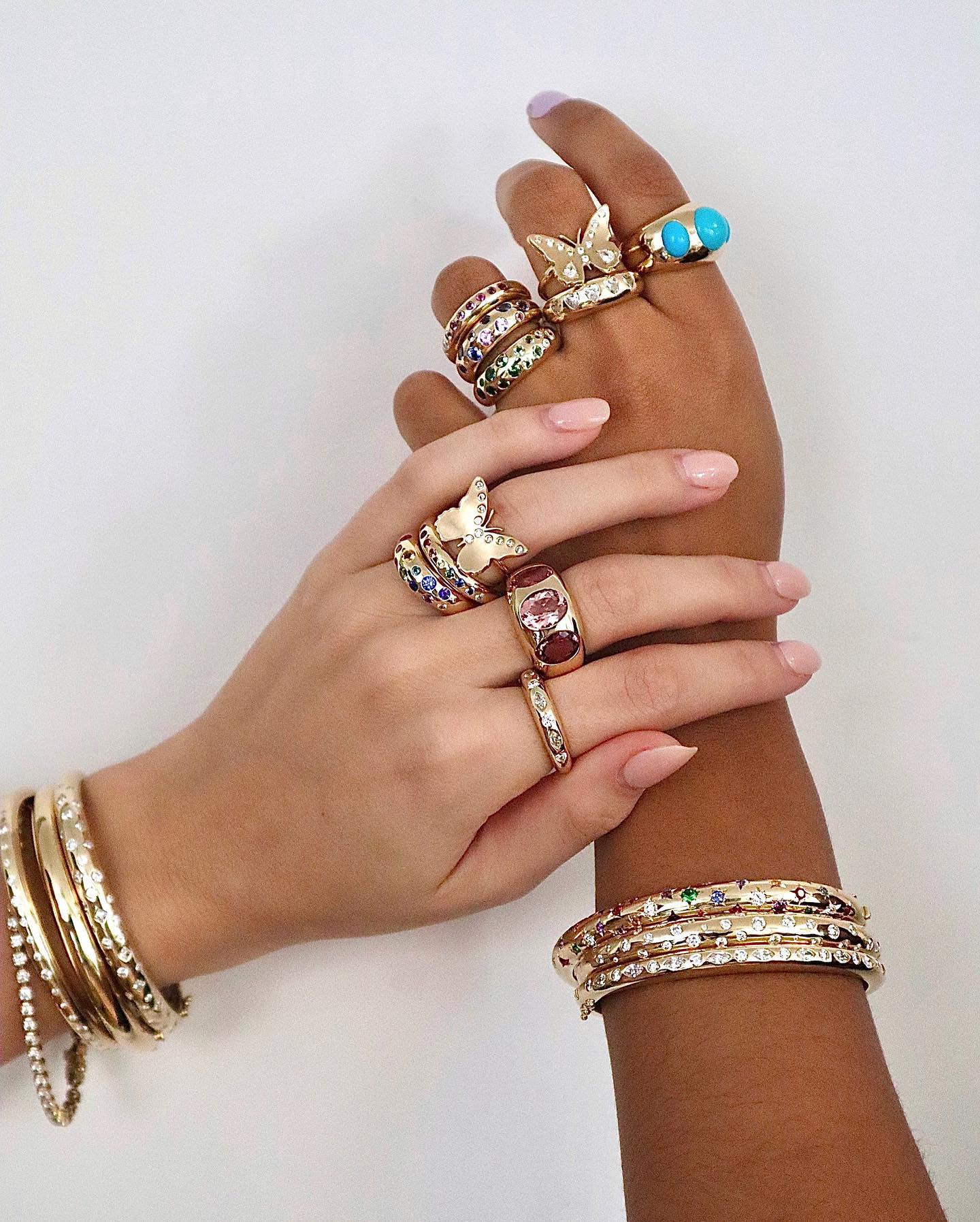 The first piece Claudia designed and made is now the brand’s signature Nomad Ring, a distinctive marriage of aesthetics and personal story. This intuitive balancing of design and meaning has become a hallmark of Claudia’s style.