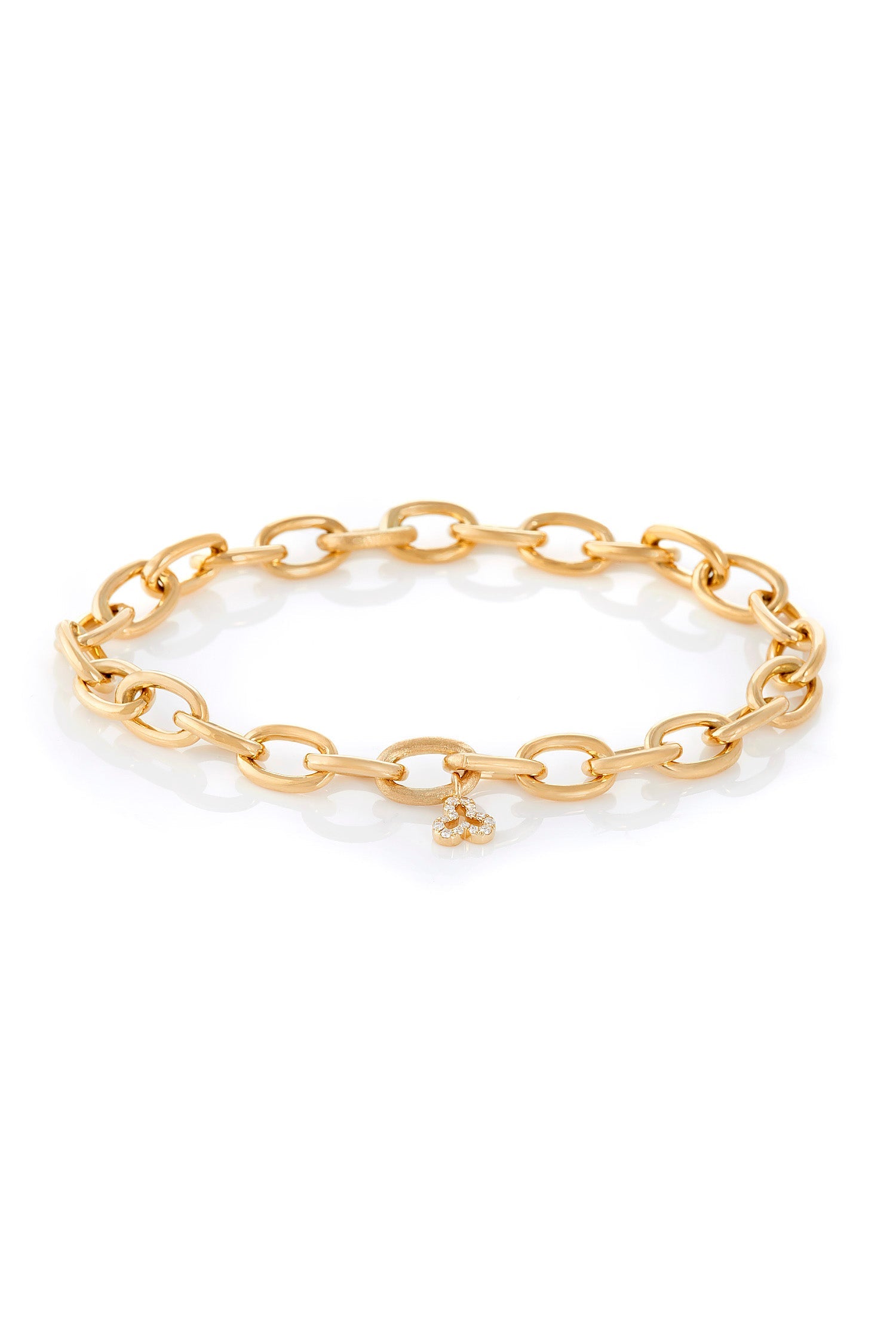A Devon Woodhill staple, their Classic Oval Chain Link Bracelet is strong, circular and lasting. Keeping it all together with our small chain link bracelet. Adorned with a diamond trefoil charm motif, it is the perfect holder for your favorite charms.
